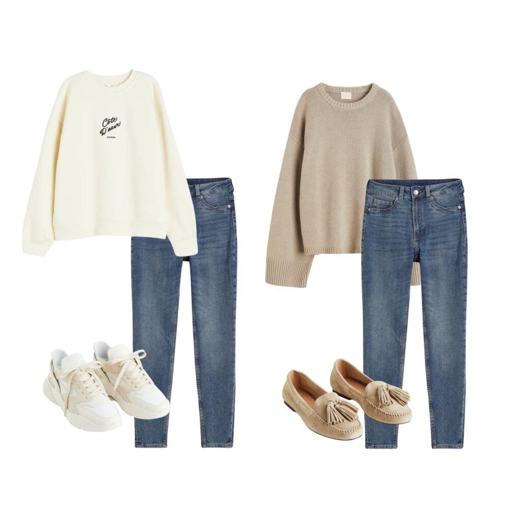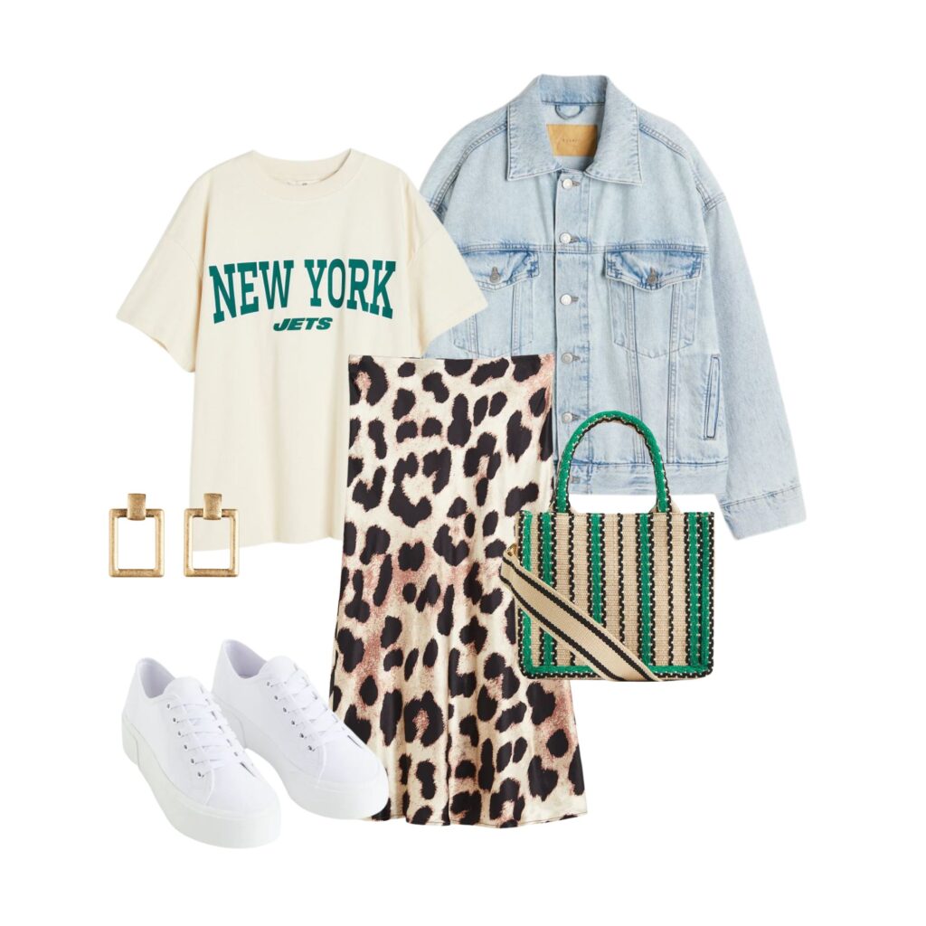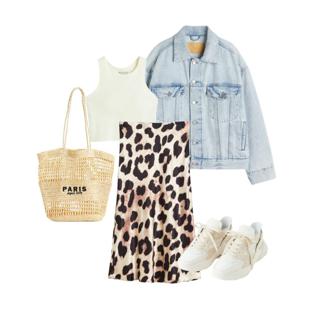 Powstało z nich kilka fajnych wczesnowiosennych zestawów. Moją zdecydowaną faworytką jest wiskozowa spódnica w panterkę – pięknie łączy się z zielenią.