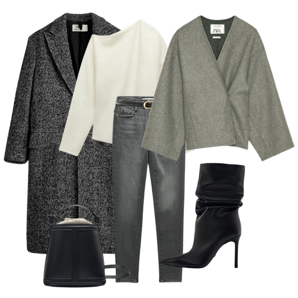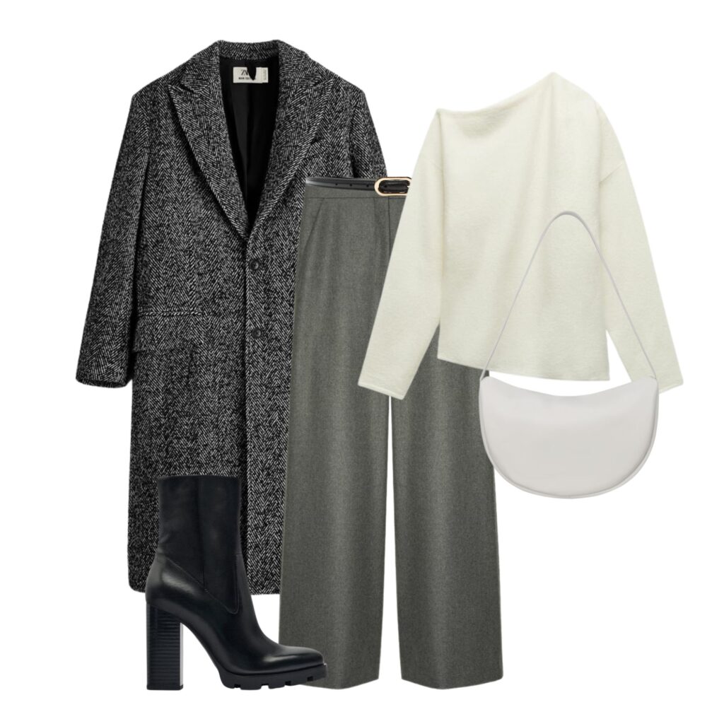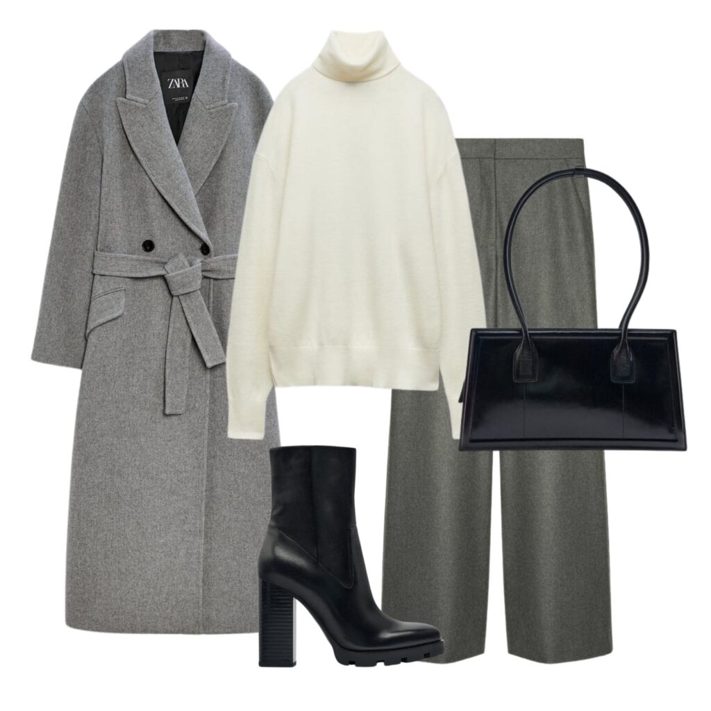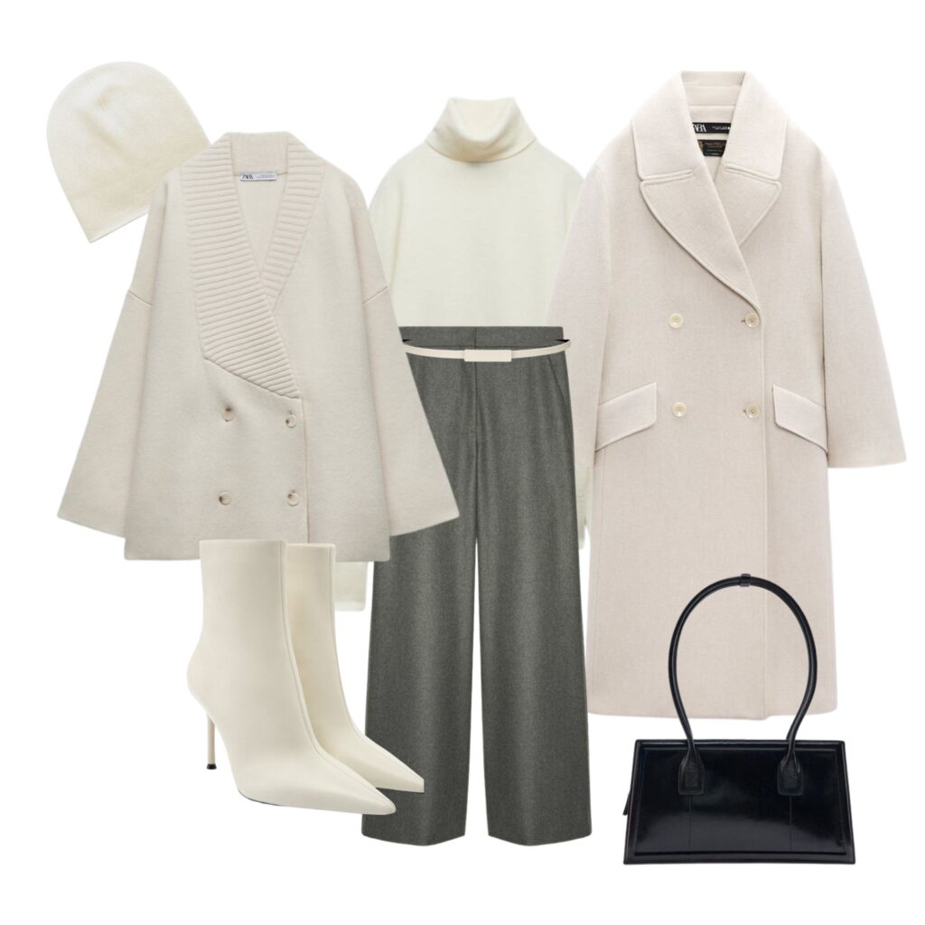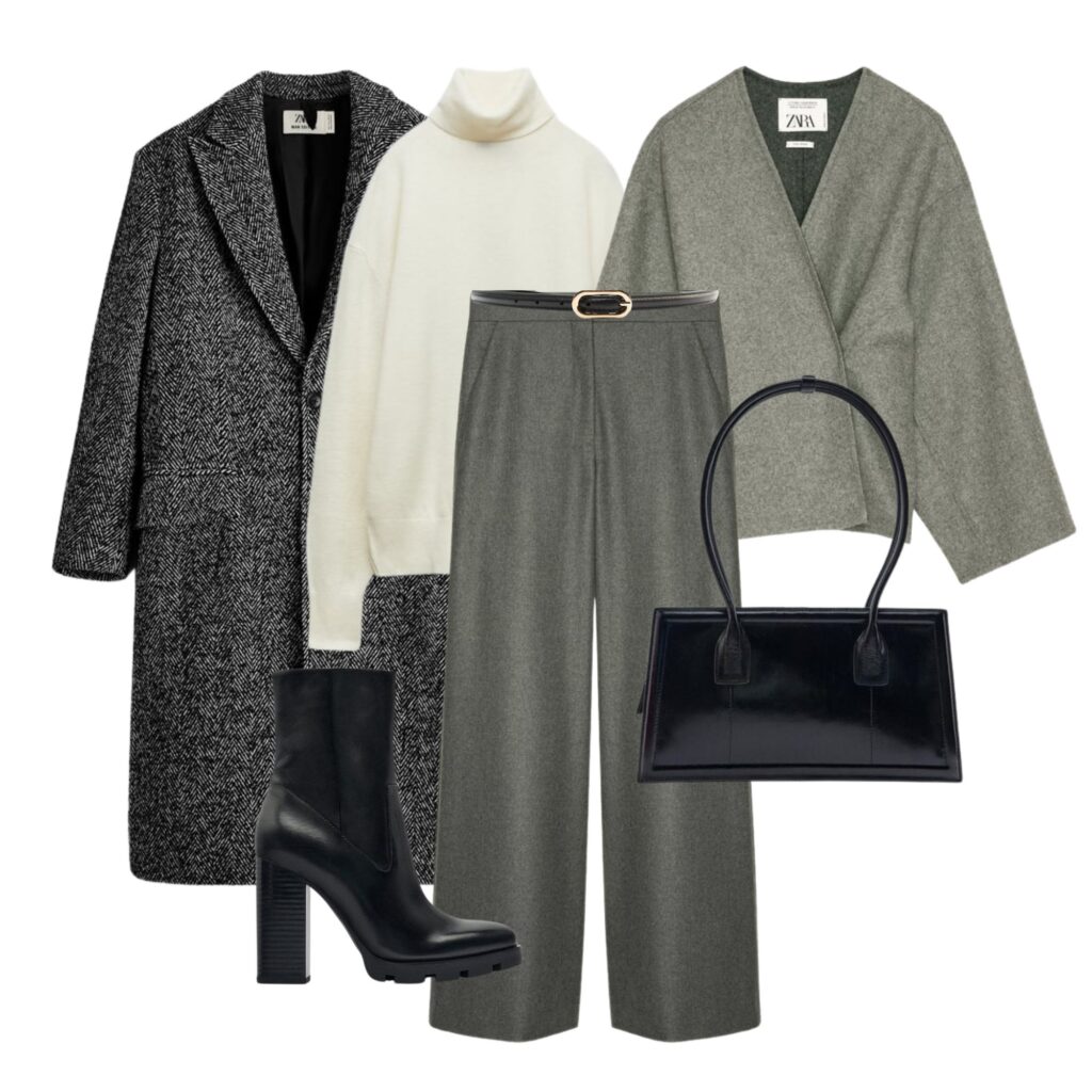 Nie potwierdzam i nie zaprzeczam, że kilka rzeczy z poniższych zestawów znajduje się na mojej liście ulubionych do polowania w najniższych cenach. W szczególności szare sweterko-narzutki są bliskie memu sercu. Ale nie zdradzę nic więcej – chciałabym mieć jeszcze jakieś szanse na zdobycie upatrzonych rzeczy.